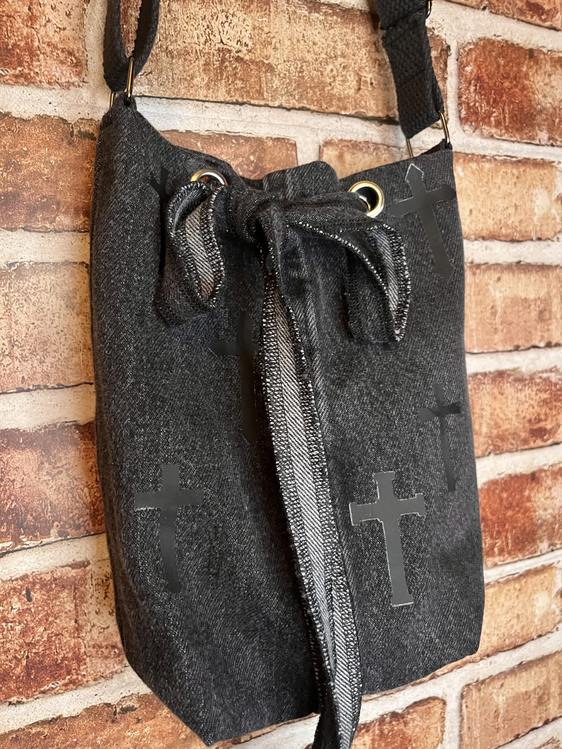 The crosses on this bag kind of blend in and that was intentional. God moves in seen, and unseen, ways. This bag is a reminder to have faith and trust in the Lord even when you have no idea how he’s working in this season of your life. God is always with you.