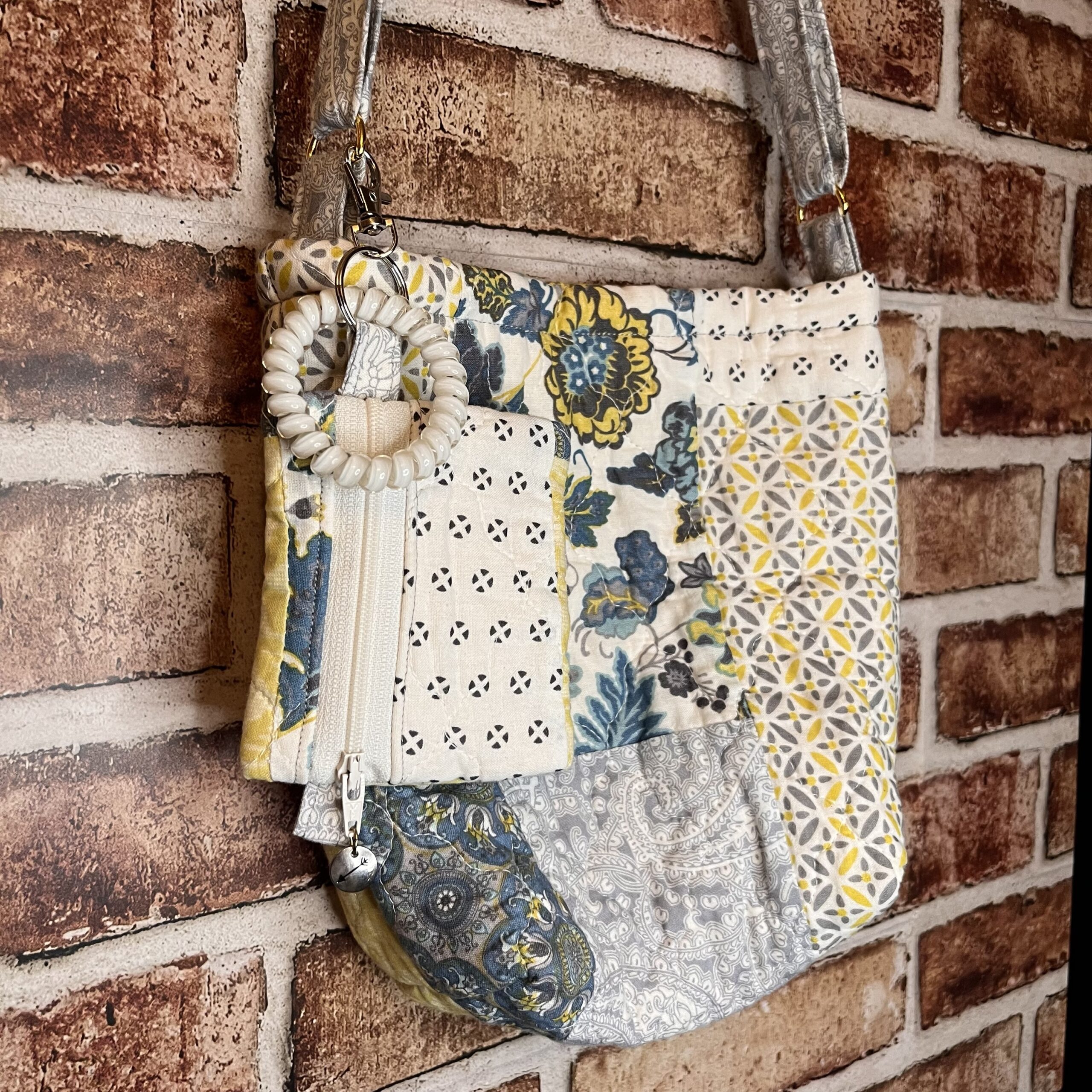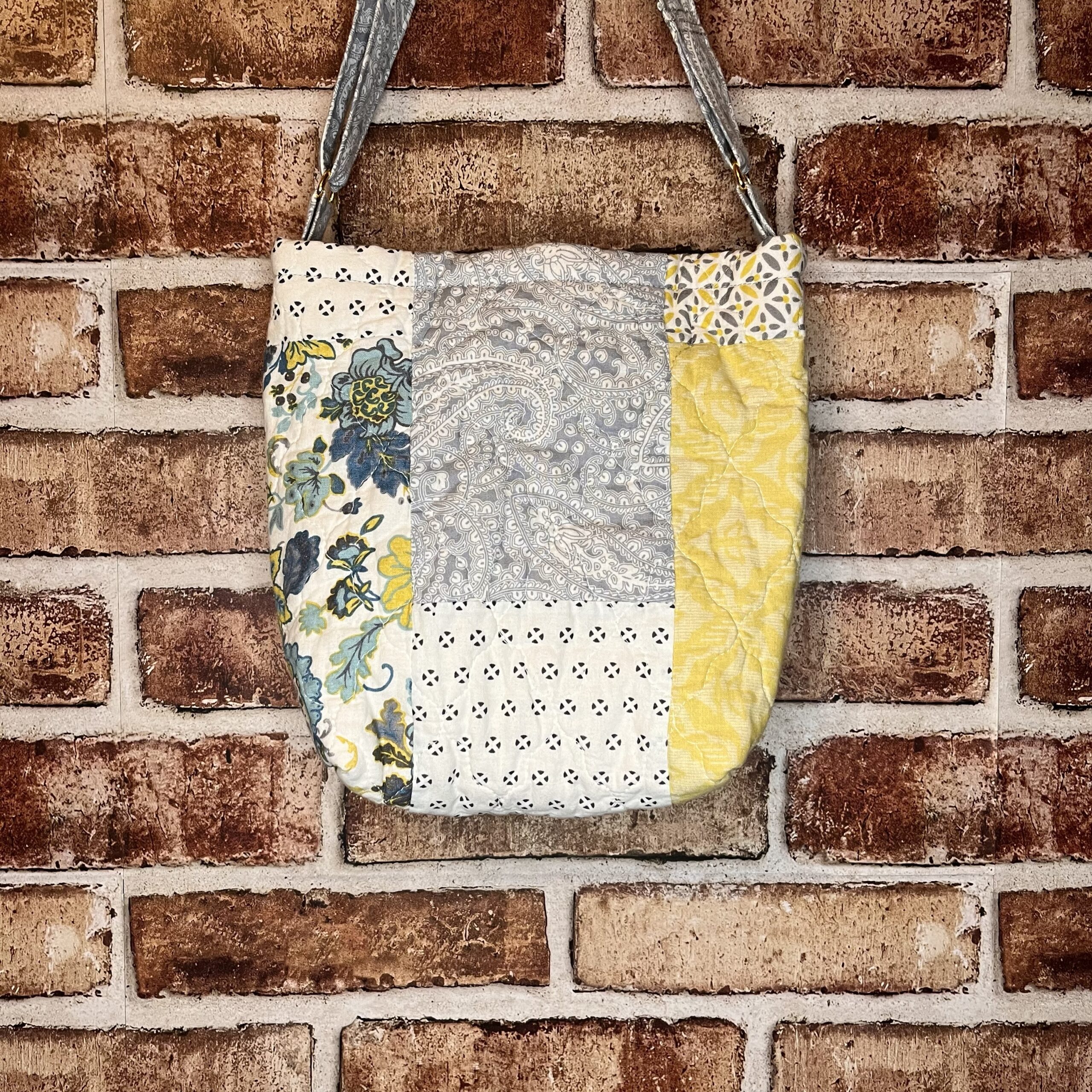 One of a Kind – Just Like You – Made with Love I made this one out of a repurposed quilt I found at a thrift store. Magnetic closure. Matching wallet! Dimensions: L(9in)xW(3in)xH(10in) Material: Cotton Machine Washable